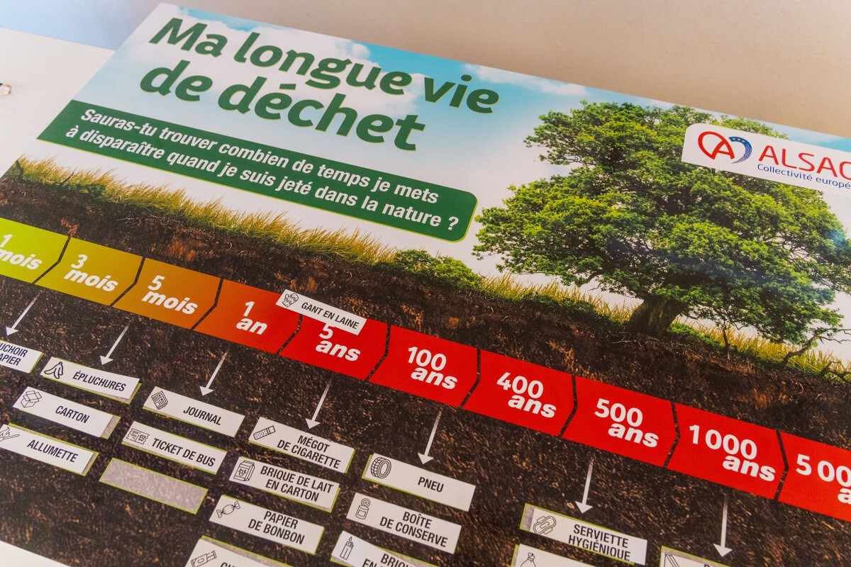 Dans un autre registre, 1022 élèves de 11 collèges alsaciens ont été sensibilisés à la prévention des déchets sur une demi-journée à une journée, notamment par des animations "ma longue vie de déchets" assurées par des services civiques. Les collégiens ont participé à un concours de slogans où ceux qui récolteront le plus de votes seront fabriqués localement par les Centres routiers puis apposés sur des panneaux le long des chaussées.