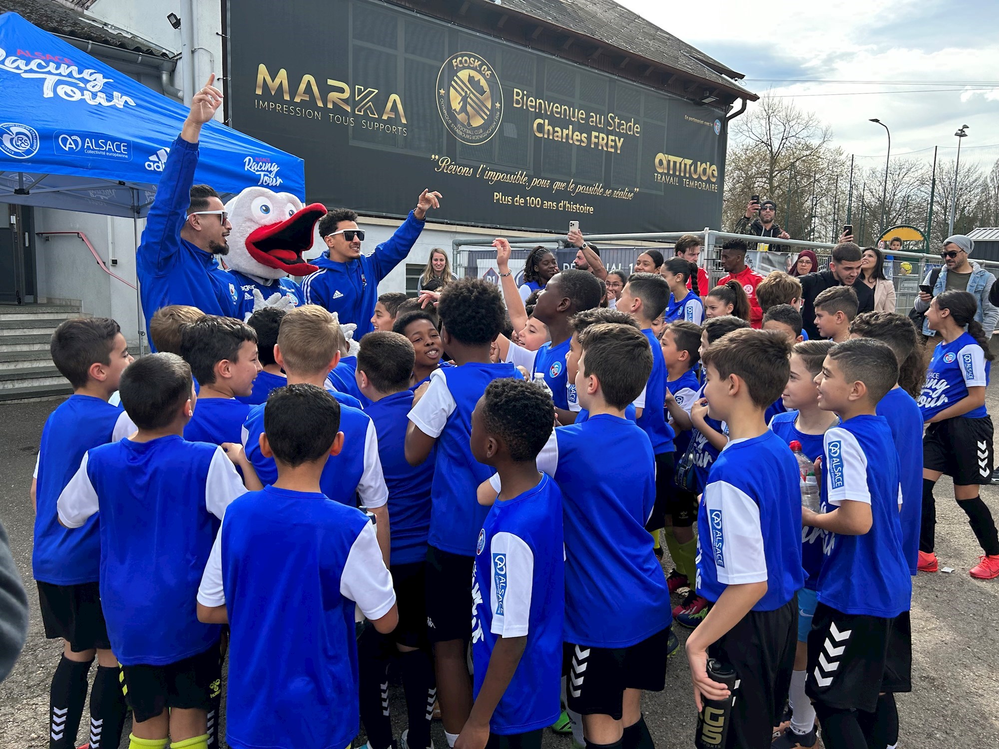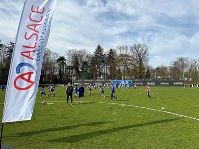 Avec la Collectivité européenne d’Alsace et le Racing Club de Strasbourg Alsace, le football professionnel va à la rencontre du football amateur partout sur le territoire alsacien. L'Alsace Racing Tour a fait une halte dans le quartier de Koenigshoffen à Strasbourg le 22 mars.