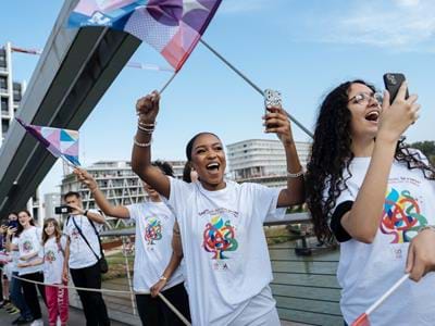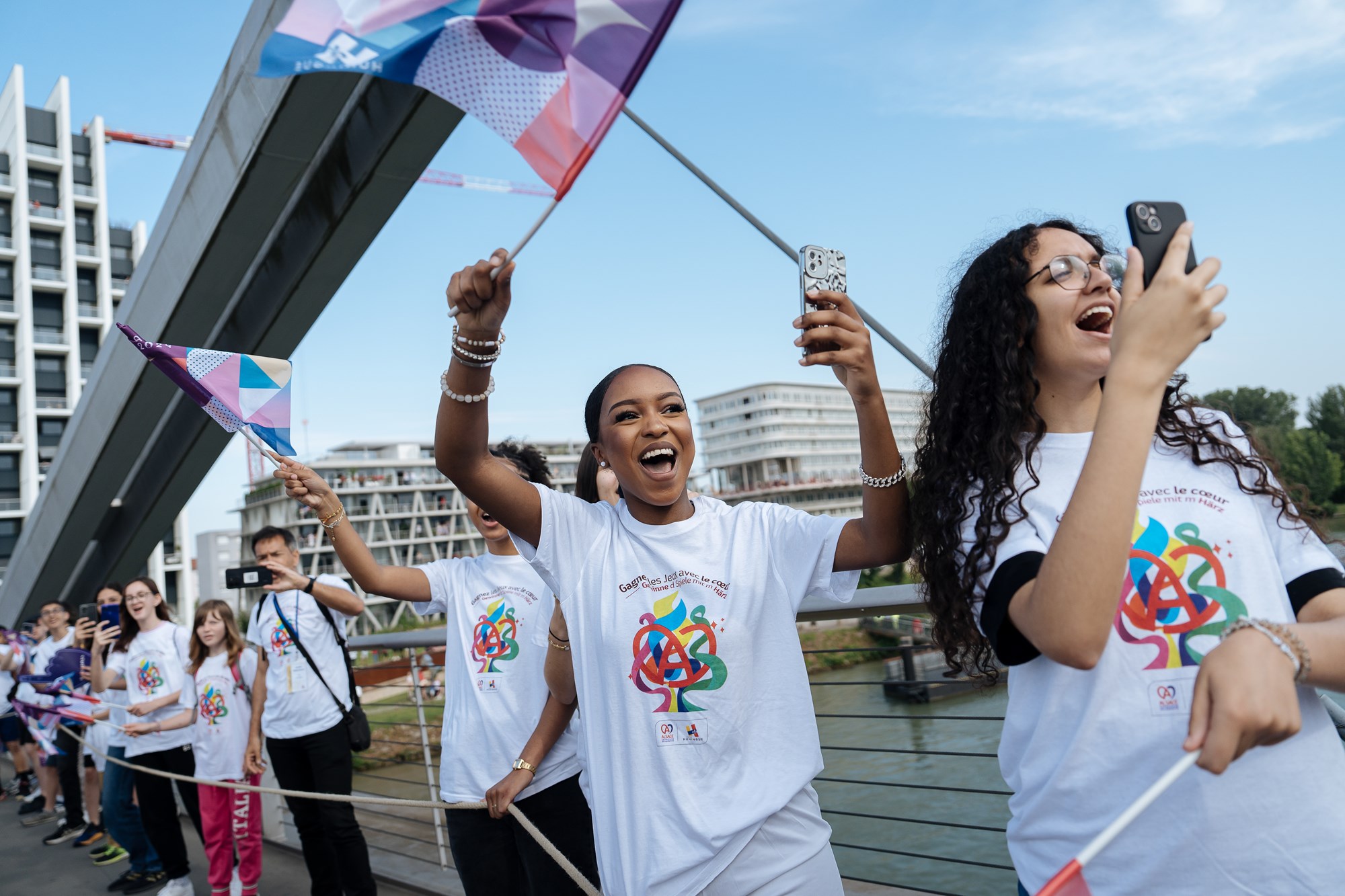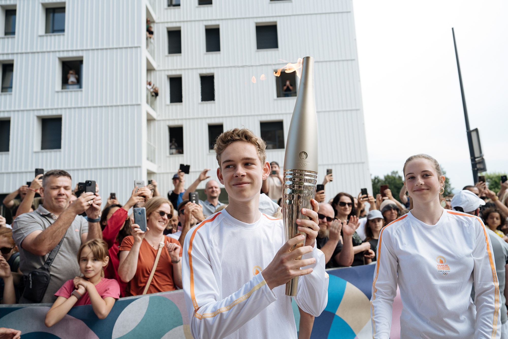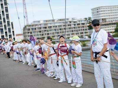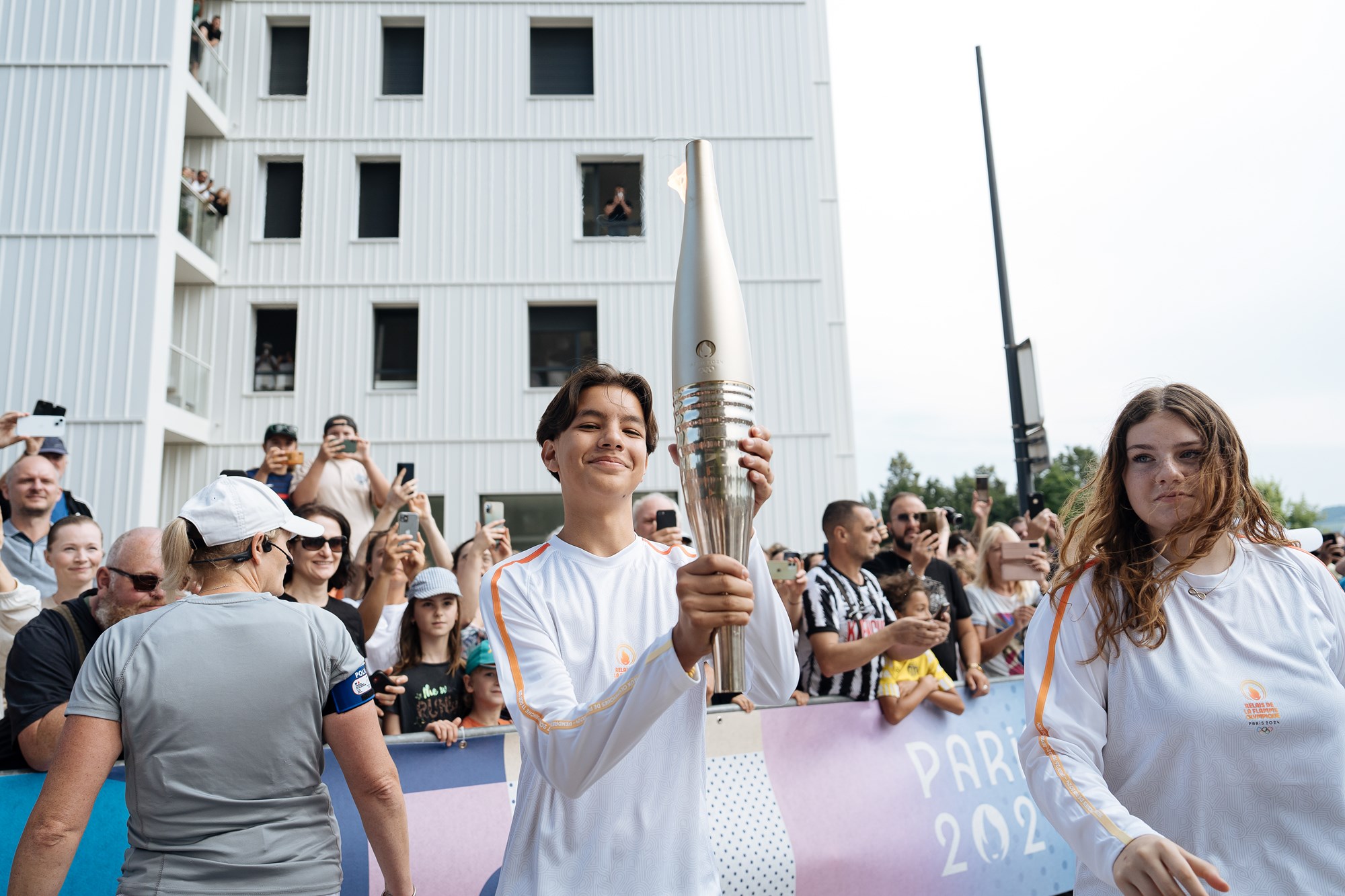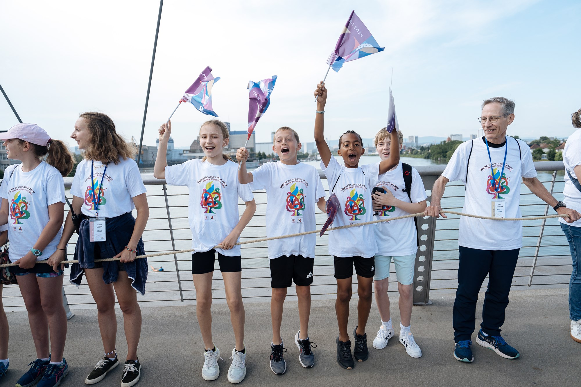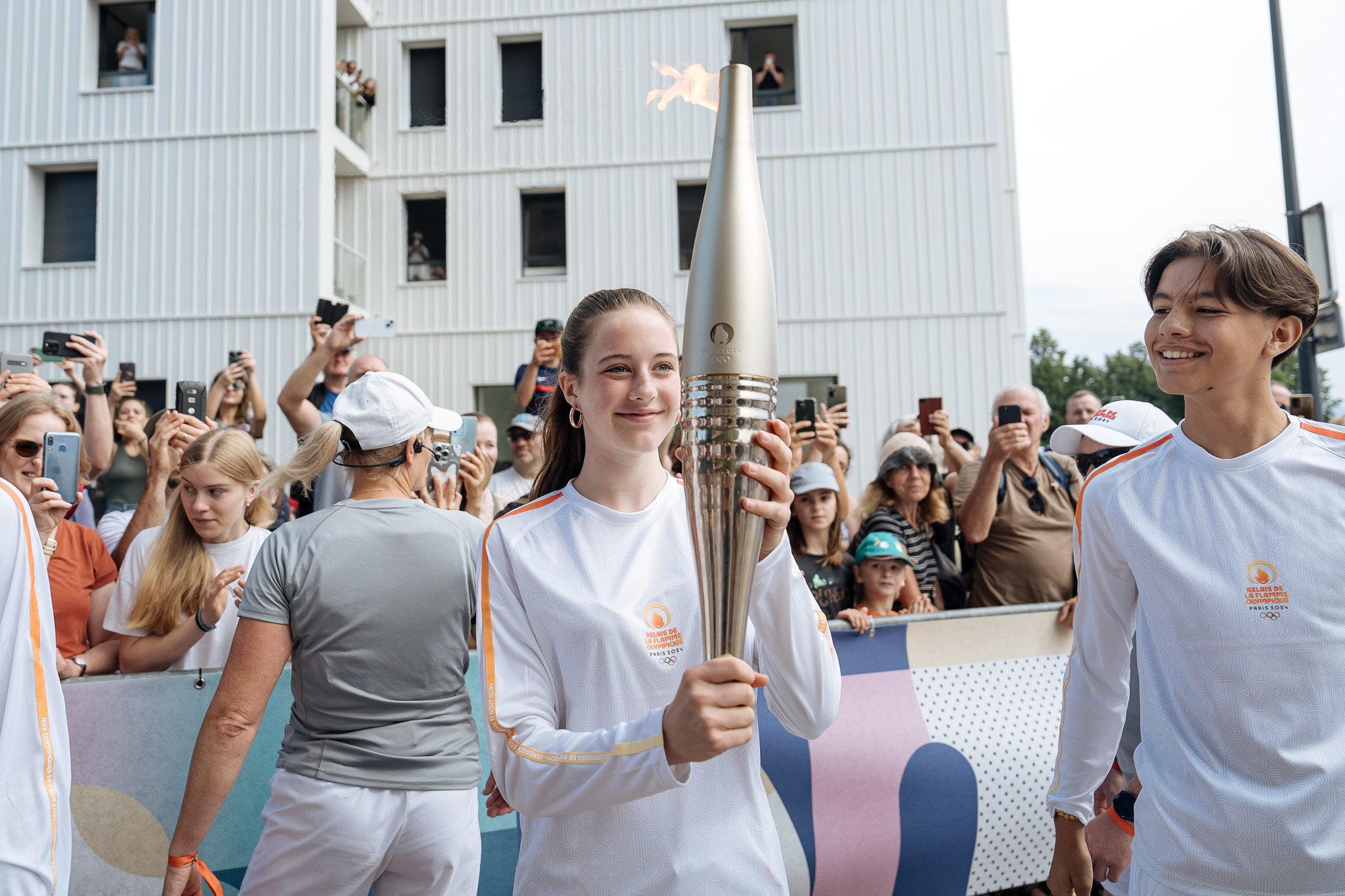 Les porteurs de la Flamme : Aline Rotter-Focken, Eric Kueny, Paula Heitz, Danaël Brathwaite, Emma Bunting, Georgeana Douet, Romane Weyh, Meryema Kurtisi, Emily Melega, Jan Christoph Vaterlaus, Sarah Schmeja, Lotta Andreae, Julien Niklas Cannevel, André Oshiro Gama, Valentine Jonnard, Philippe Erblang, Mathias Erb, Alizée Bertrand, Oumar Ba et Linn Cordier.