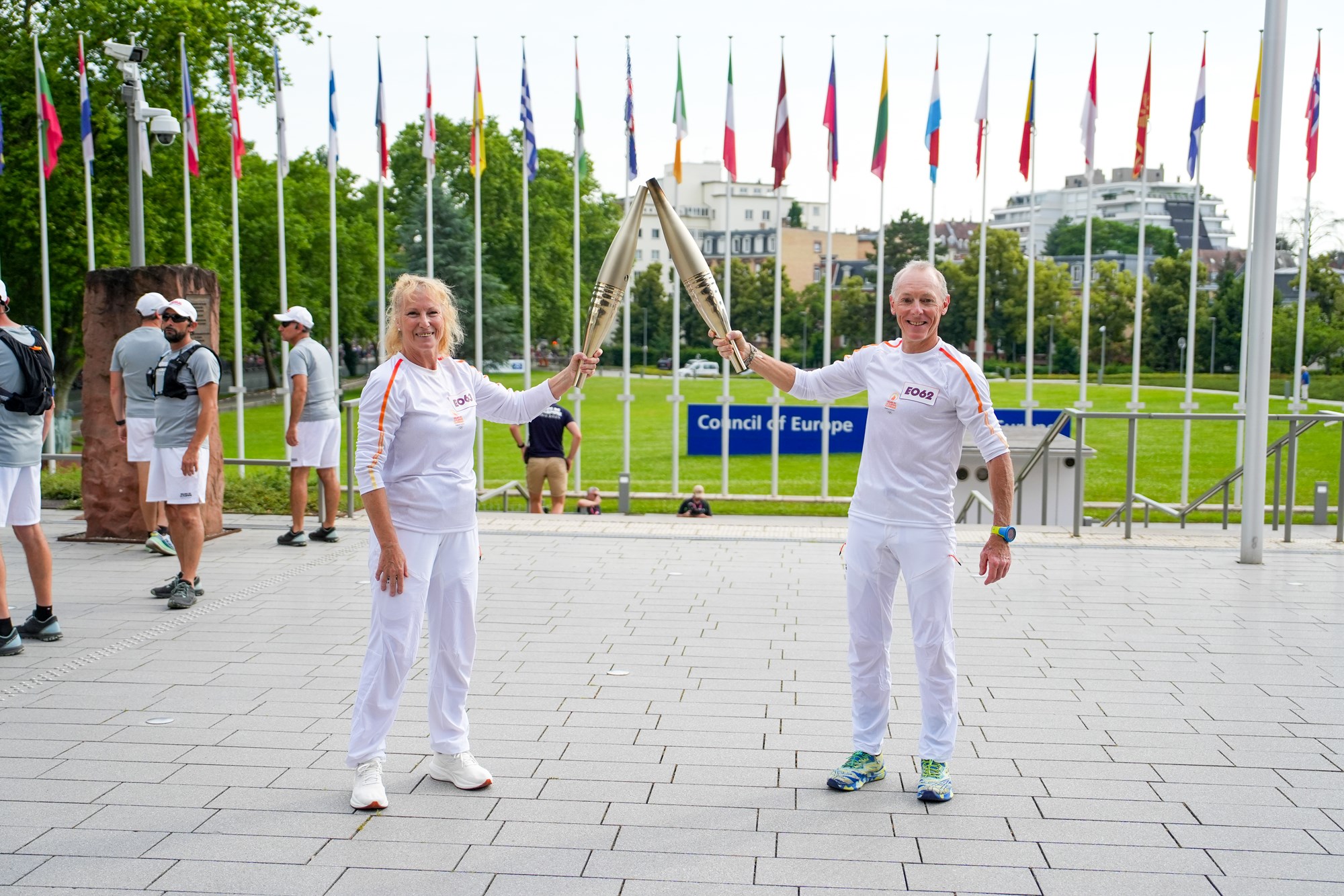 Les porteurs de la Flamme : Inène Podpovitny, Olivier Schoch, Geoffrey Andna, Mohamed Siaaliti, Amor Gharras, Aimas Amara, Yvetta Palatino, Gilles Poiriez, Benoit Petit-demoulière, Alexandre Gigow, Nathan Cochin, Thierry Héberlé, Isabelle Berthelot, Maria Carmen Ruiz De Vargas Carrascosa, Javier Escudero Navarrete, Pierre Mann, Constance Schaerer, Matthieu Pokora, Raphaël Voltz, Elisa Gebus, Sally Poumbga, Rachel Boursier, Philippe Bourron, Angelo Parisi, Jean-Philippe Andre, Sonia Rapin-Stiefel, Ilhame Raguig, Yves Wansi, Ibrâhîm Ameur, Amandine Barthel, Samy Benyahya, Caroline Boquel, Magali Bottemer, Lukas Fendrich, Julie Fritz, Léonie Girardey, Inès Grandclaude, Maxime Hermal, Hugo Himber, Marc Kleinbeck, Ninon Lassalle, Tatiana Le Thiec, Alexandra Lutz, Arthur Mehl, Claude Paffenhoff, Cindy Schlub, Nicolas Sigrist, Ulysse Stegel, William Tyburn, Lucie Vogel, Gaël Matuszewski, Léa Mayeur, Emily Scadgell et Arsène Wenger.