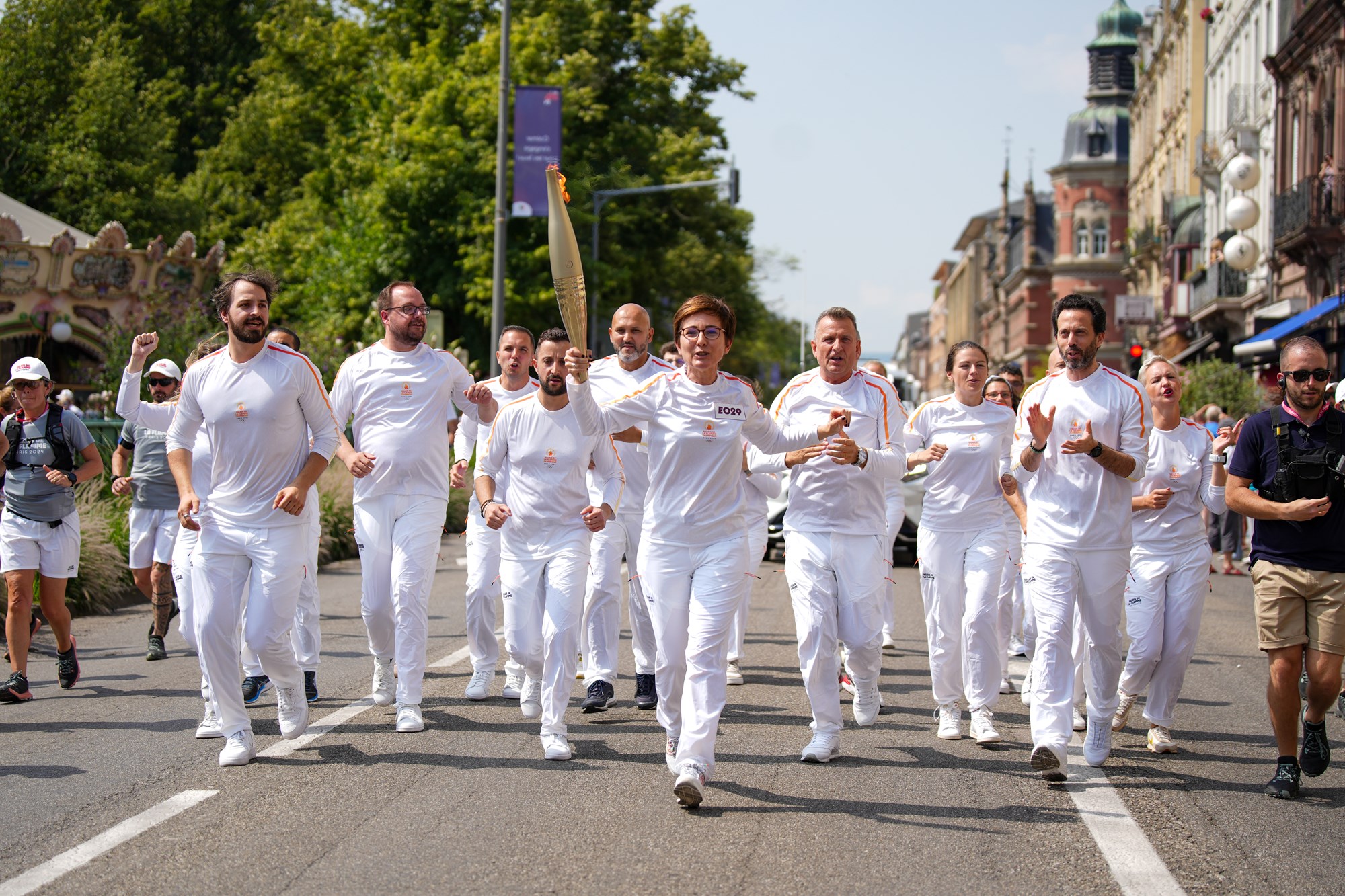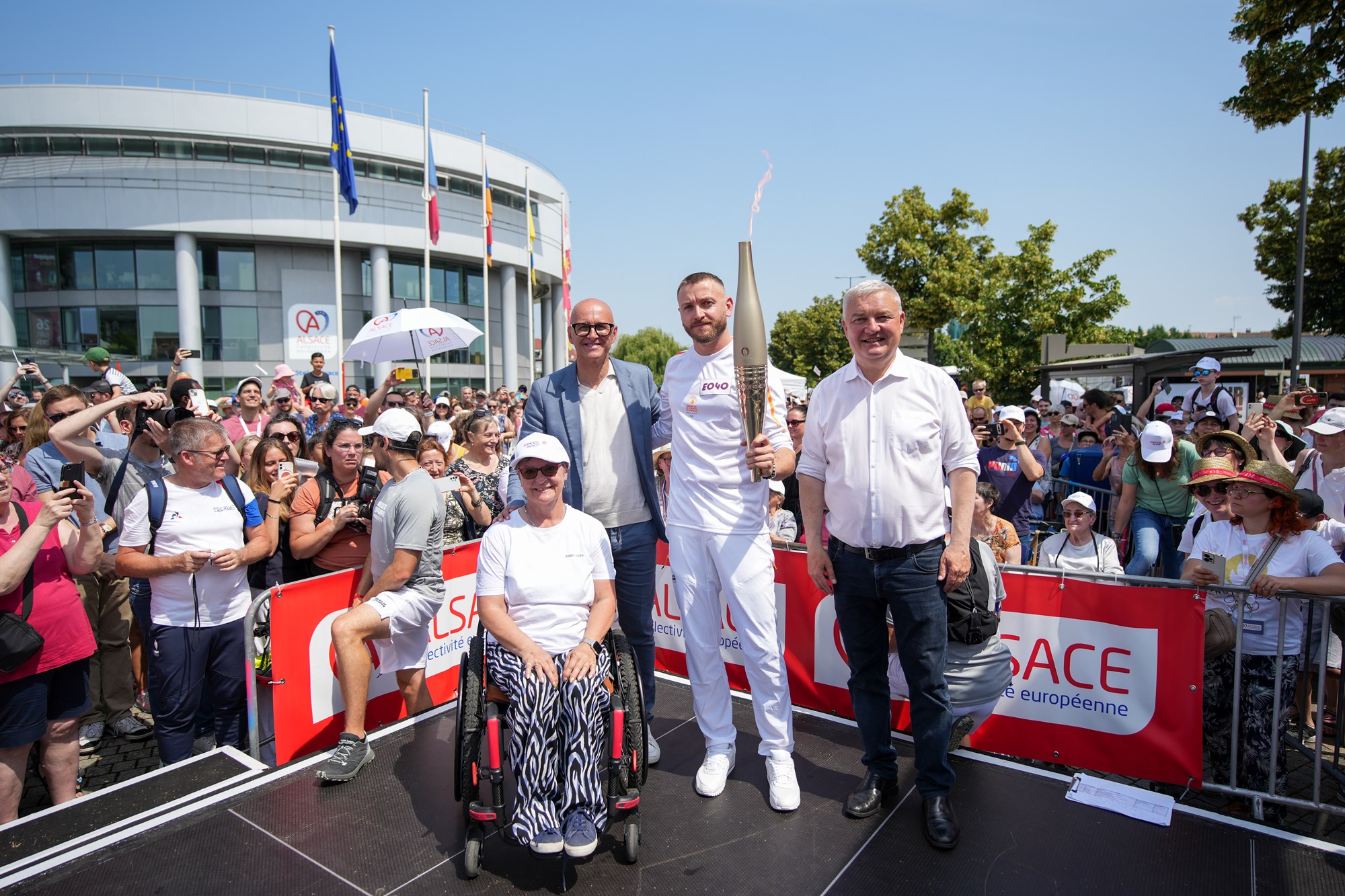 Les porteurs de la Flamme : Brigitte Saint Bonnet, Michael Herter, Natacha Hoegel, Teodora Tilica, Sophie Coccia, Melanie Richard, Nicole Spiewok, Anirudh Bobbili, Sacha Engesperger, Bénédicte Solanet, Alexandra Walonislow, Anne-Caroline Bindou, Marine Bader, Josephine Dreyfus, Maud Meyer, Valérie Valentin, Aurélie Blandin, Oum keltoum Rabah, Coralie Bos, Beatrice Beyer, Slim Ben Hadj Amor, Mohamed Zouaghi, Julien Lacroix, Tom Sarwatka, Kamel Tebbane, Gaël Ulmer, Maxime Noisette, Cédric Renaud, Nicolas Richert, Benjamin Piotin, Romain Leclere, Peguy Houbre, Evan Carreau-Joho, Florent Philippe, Valérie Ruetsch, Adla Dlugosz-Gorecka, Aleks Sredov, Marc Nagor, Emeline Messenga, Laura Strub, Sophie Ziche, Semra Sernic et Mickaël Hemmerlin.