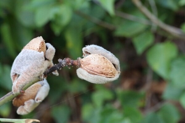 Fruits : Les « Amandes » sont des fruits de 3 à 5 cm. Il s’agit d’abord d’une drupe non comestible oblongue et charnue de couleur verte puis brune à maturité. On y trouve à l’intérieur deux graines (amandons) qui sont comestibles.