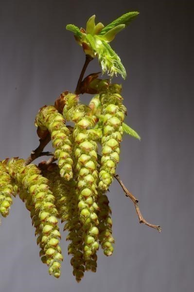 Fleurs : Fleurs mâles en longs chatons pendants jaunâtres; fleurs femelles en chatons plus courts.