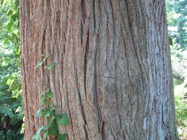Ecorce : L’arbre possède une écorce brun rougeâtre. Elle est fibreuse et crevassée longitudinalement.