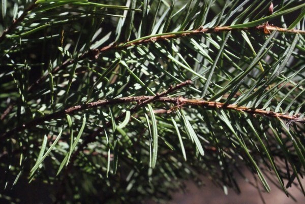 Feuille : Des aiguilles minces, aplaties, laissant apparaître deux trainées blanches discrètes sur leur face inférieure, caractérisé par une odeur de citronnelle.