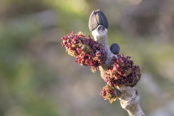 Fleurs : En bouquets denses à l'extrémité des rameaux, nues, tirants sur le rouge.