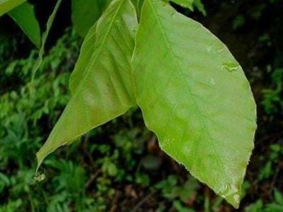 Feuille : Son feuillage est caduc. Ses feuilles sont de formes elliptiques, allongées et finement crénelées sur les bords du limbe. Elles mesurent 7 à 15 cm de long pour 5 à 9 cm de large. Elles sont disposées de manière alterne et sont rugueuses. Elles sont de couleur vert clair.