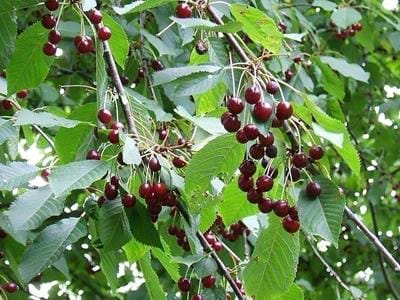 Fruits : Les fruits sont les merises ou guignes. Il s’agit de petites drupes globuleuses rouges et qui par la maturation deviennent noires.