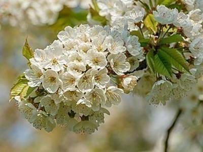 Fleurs : La floraison se déroule au printemps (avril-mai). Les fleurs sont en bouquet avec un long pédoncule et de couleur blanche.