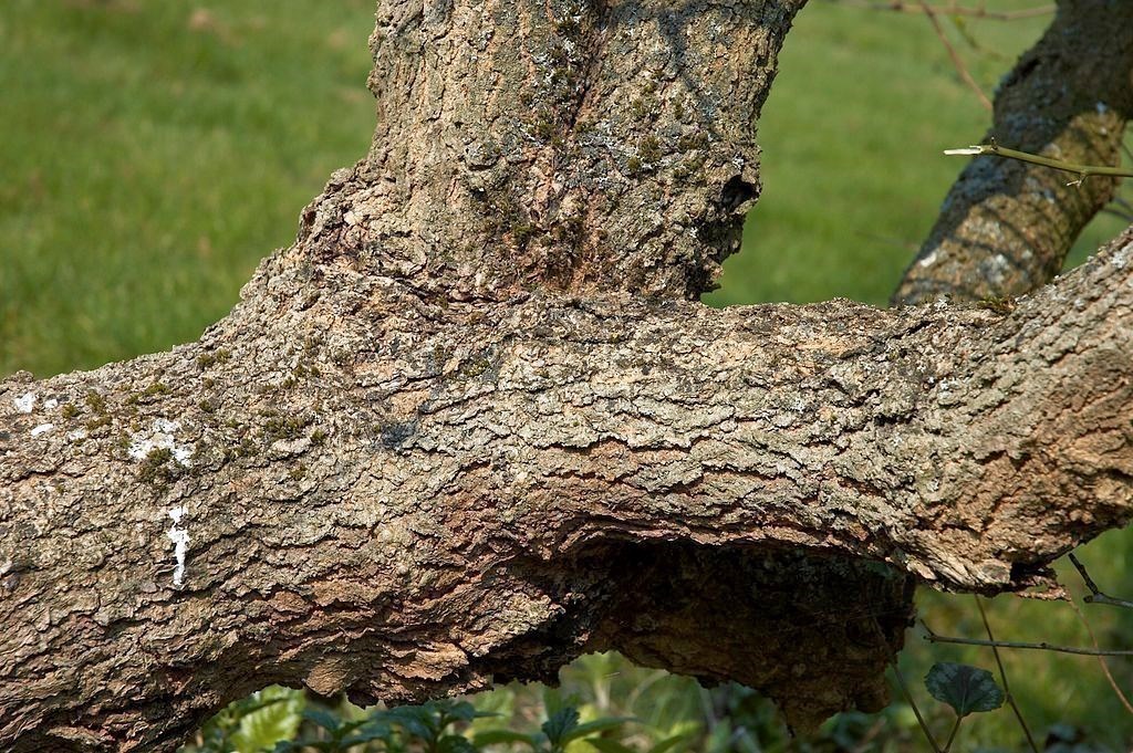 Ecorce : L’arbre possède une écorce grisâtre et crevassée. Les jeunes rameaux sont légèrement pubescents puis glabres. La ramure est noueuse et tortueuse.