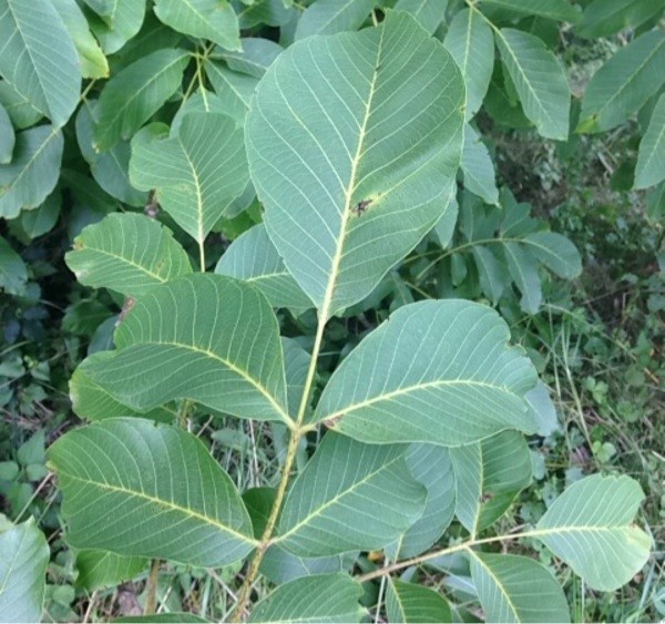 Feuille : Grandes (longues de 6-15 cm), composées, à 5-9 folioles ovales, glabres.