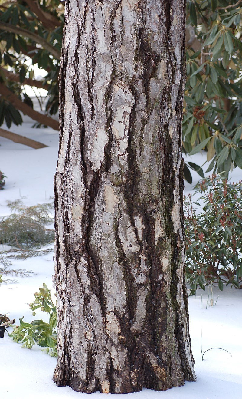 Ecorce : L’écorce est jaune-brun à grise, avec des écailles plates crevassées.