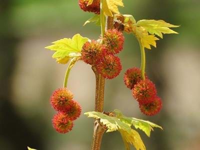 Fleurs : La floraison se déroule au printemps (avril-mai). Les inflorescences mâles et femelles sont séparées et elles sont monoïques. Il s’agit de capitules groupés, globuleux et pendants. Les fleurs mâles sont verdâtres et les fleurs femelles sont rougeâtres.