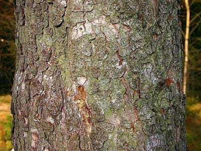 Ecorce : L’arbre possède une écorce mince et lisse argentée. Sur des sujets plus anciens, l’écorce est crevassée et noirâtre. Les jeunes rameaux sont disposés en verticilles étagés et de couleur grisâtre pubescent.