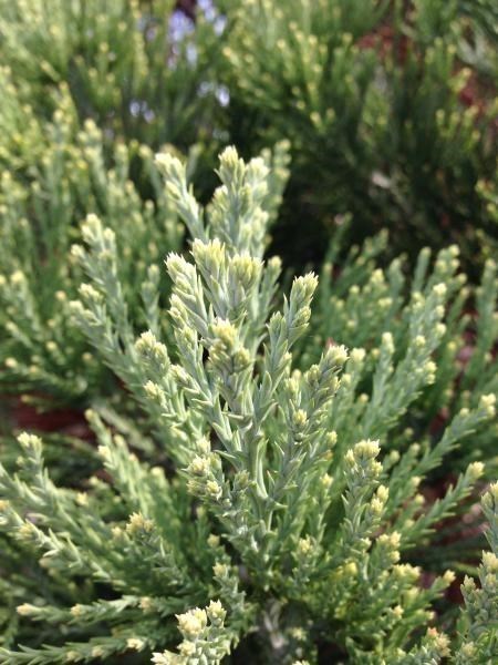 Feuille : Longues (3-8 mm), vert sombre, raides, à odeur d'anis.