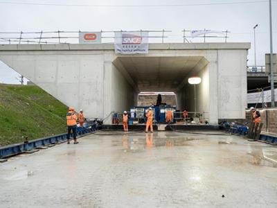 Cette opération de 120 heures non-stop nécessite de déposer les voies ferrées existantes, d’installer le nouveau pont ferroviaire et de remettre la voie ferrée.