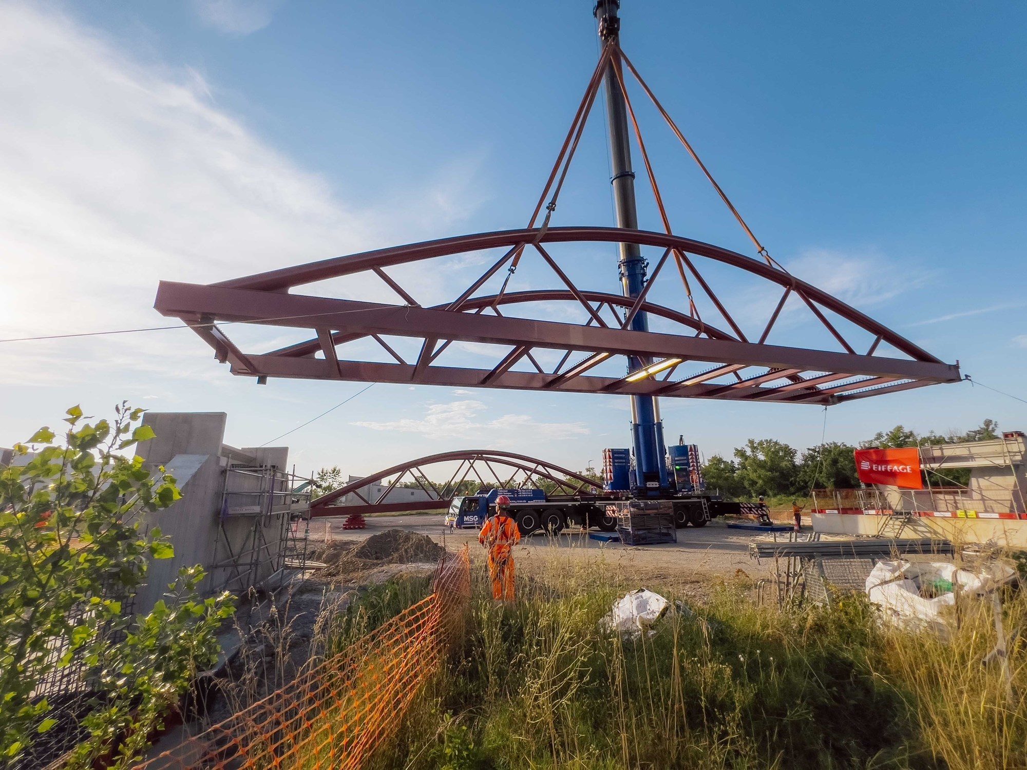 5A3F - pose de la passerelle piétons - cyclistes. © CeA