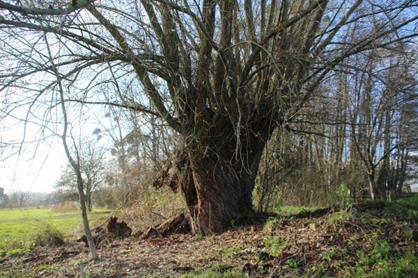 Ce très grand saule têtard est situé le long de l'ancienne voie romaine, devenue maintenant une voie cyclable. Il présente une énorme cavité en son centre.