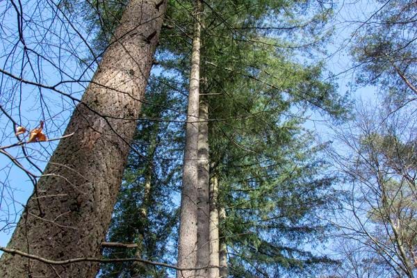 Situé à proximité d'une piste cyclable, l'alignement est composé d'environ 5 douglas remarquables pour leurs dimensions et leur impact sur le paysage.