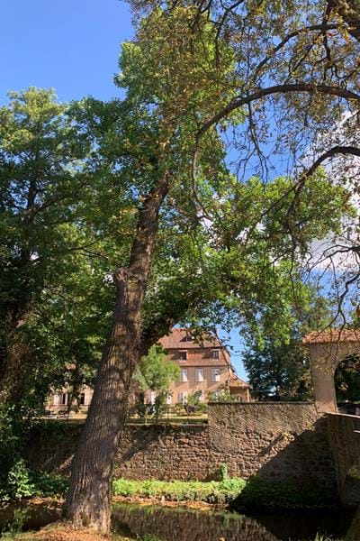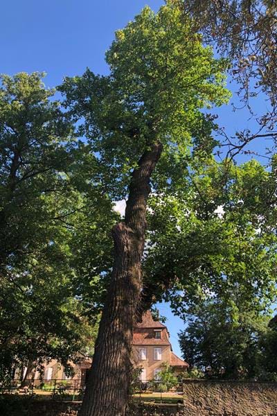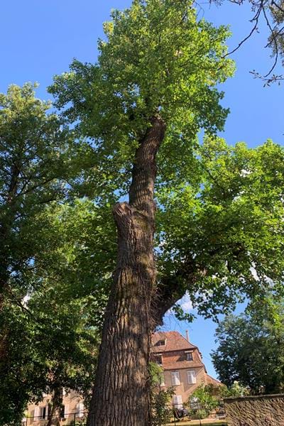 Ce tulipier de Virginie est remarquable pour sa valeur patrimoniale. Il est situé dans le parc du Grunstein au niveau de ses douves.