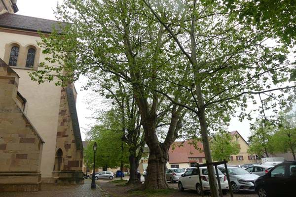 À Rouffach, non loin de l'église, un ancien groupement de trois platanes est accompagné d'un groupe tout aussi ancien de trois tilleuls. Ce petit ensemble se distingue par sa morphologie pittoresque et forme un groupe d'arbres à la fois original et harmonieux.