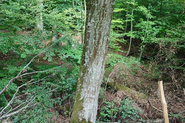 Ce charme est remarquable de par ses dimensions, en effet il est rare de découvrir des individus de cette essence au grand et large. Positionné en limite d'une ravine, cet arbre consolide le dévers avec son système racinaire.