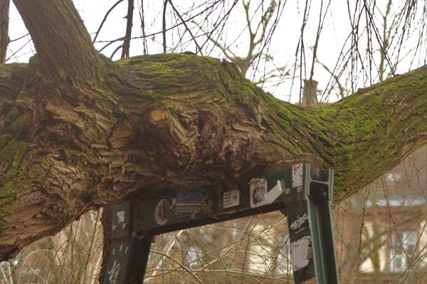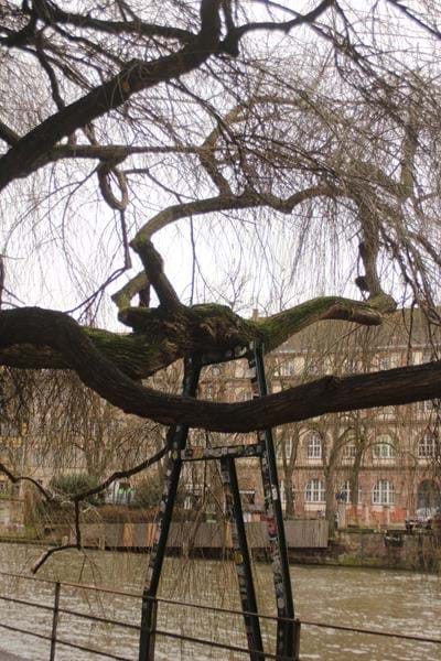 Ces deux saules pleureurs sont appréciés par les passant·e·s. Leur tronc, se développant à l'horizontal, passe au dessus du chemin de halage et permet de profiter de la fraicheur apportée par leur ombrage en été. En hiver, lorsque les feuilles sont tombées, des anastomoses sont visibles entre les branches. Ces fusions, entre deux parties normalement distinctes d'un arbre, forment des ponts de branches en branches. Ces saules persévérants ont besoin de supports en métal vert pour porter leur remarquabilité.