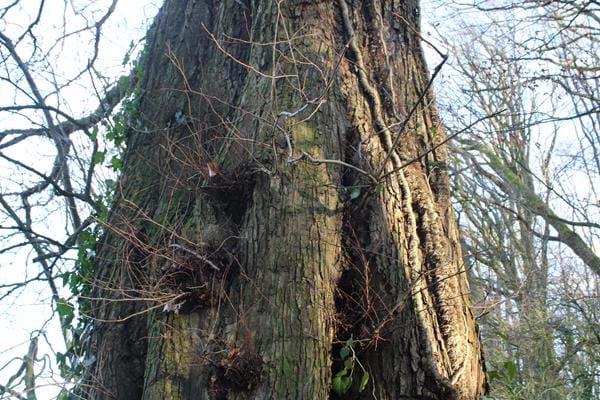 Cet orme lisse se dénote des autres de part ses dimensions et ses nombreux refuges pour les animaux. En effet, sans avoir besoin de trop vous approcher, vous apercevrez des nids.