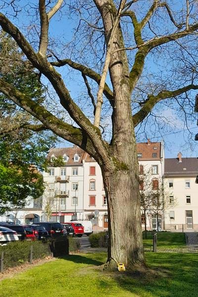 Ce sophora du Japon n'existe qu'en ville car c'est un arbre exotique, qui a été implanté dans une visée ornementale. Celui-ci a des dimensions importantes et se situe à coté d'un platane remarquable. Le cadre avec l'église est très joli et apporte une vraie valeur esthétique dans ce petit parc urbain.
