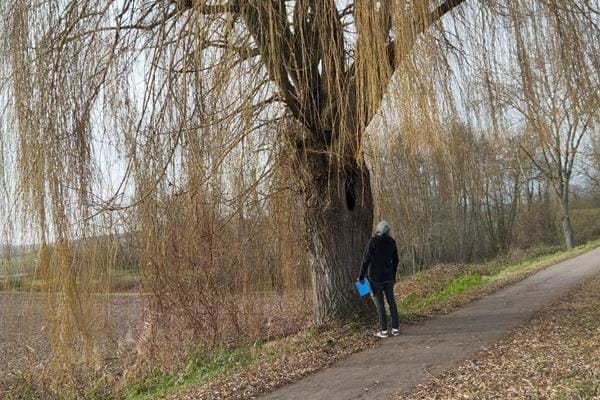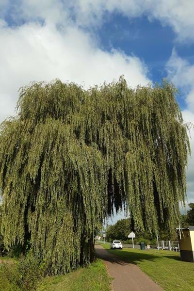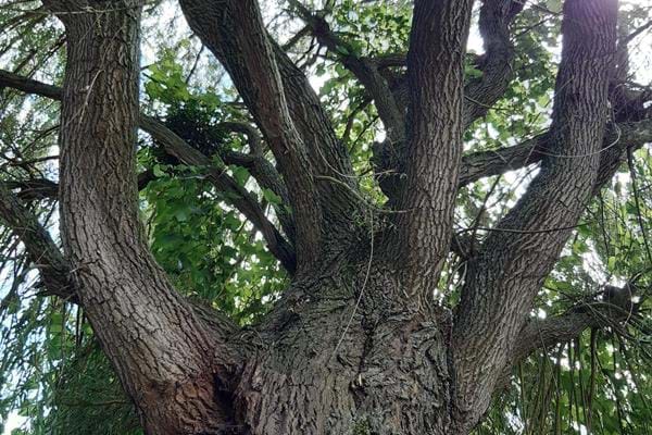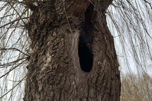 Repérable de loin et facilement accessible par la voie verte, ce saule pleureur est remarquable pour son impressionnante cavité. La cavité risque d'être rebouchée car des personnes ont tentées de la bruler.