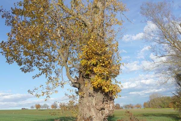 À Ranspach-le-Haut, ce vieux peuplier noir, puissant malgré une taille plutôt modeste pour son essence, se distingue par une silhouette remarquable, avec un tronc fortement boursouflé. Ce peuplier est en fin de vie, comme en témoignent plusieurs charpentières mortes. D’autres sujets de grande taille sont également présents au sud du village, mais ils sont moins visibles et moins accessibles.