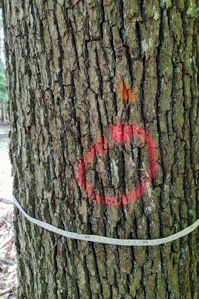 Ce cormier se trouve en parcelle forestière, il est signalé par un rond rouge.