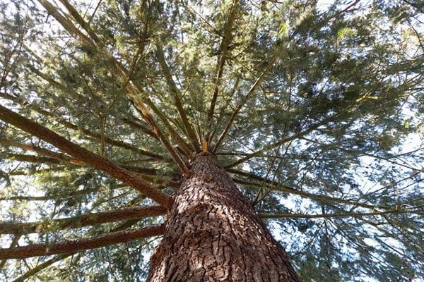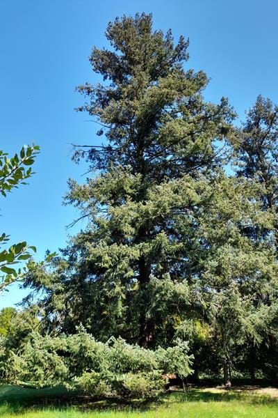 Ce douglas offre un cadre reposant, il y a une pancarte renseignant son essence et un banc avec une table pour pouvoir s'assoir à l'ombre.
