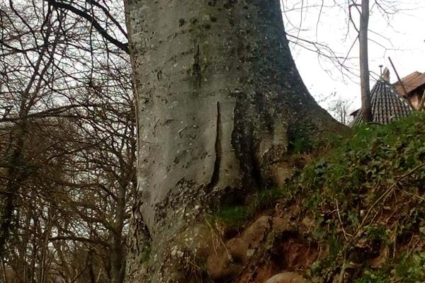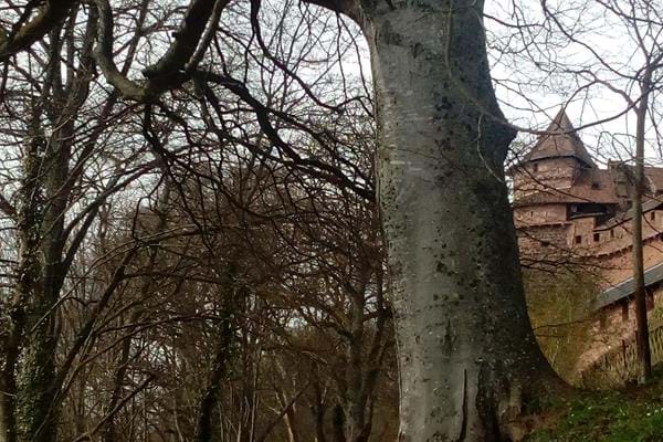 Ce hêtre est remarquable pour ses dimensions et son esthétisme (racines dégoulinant le long du chemin). Situé au pied du château du Haut-Koenigsbourg il mesure 37 mètres de hauteur.