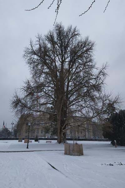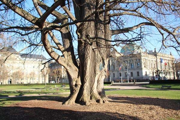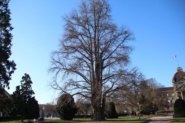 Situé place de la République, ce magnifique Ginkgo fait parti d'un ensemble de 4 spécimens. Le groupe est très impressionnant à observer à l'automne, avec un feuillage doré. Ces ginkgos sont des présents de l'empereur du Japon à Guillaume II. Les arbres furents plantés entre la fin du 19ème siècle et le début du 20ème siècle.