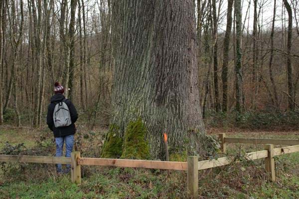 L'arbre se situe à l'orée de la forêt et un passage pédestre passe près de l'arbre.
