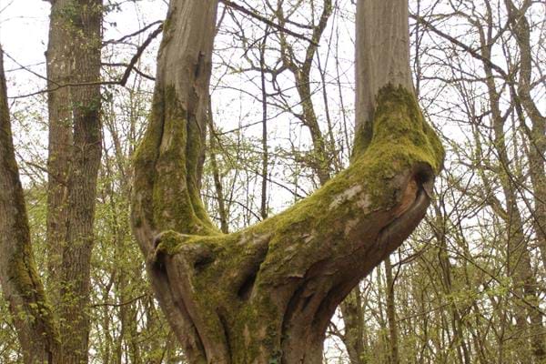 La symétrie quasi parfaite de cette fourche de charme est remarquable. La forêt de Geudertheim est riche en charmes aux formes tortueuses, qui forment un ensemble remarquable au niveau départemental.