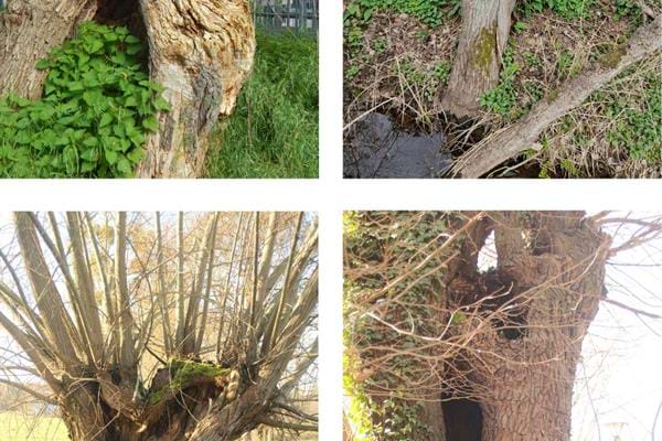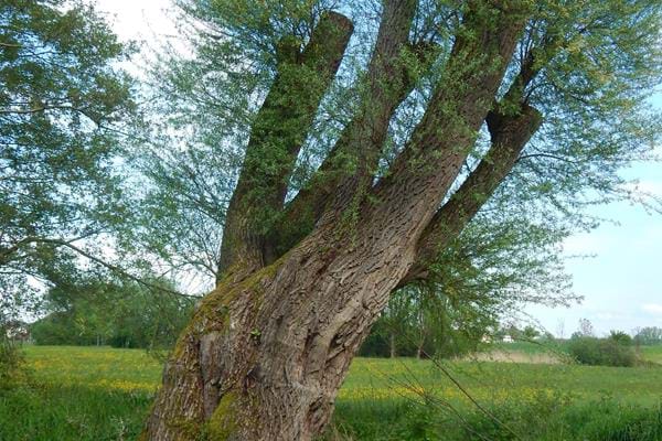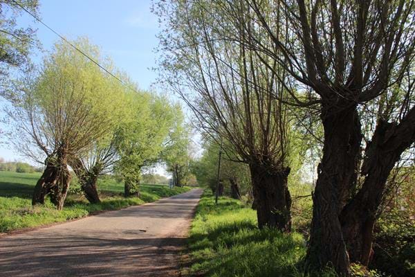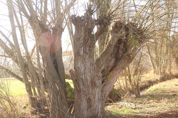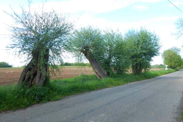 Magnifique alignement de saules têtards qui ont donné le nom à la rue des saules à Griesbach, sur la commune de Gundershoffen. Un arbre têtard, aussi appelé trogne, est un arbre dont la forme caractéristique résulte d'un mode d'exploitation ancestral consistant en des tailles périodiques spécifiques afin de fournir principalement du bois et du fourrage.