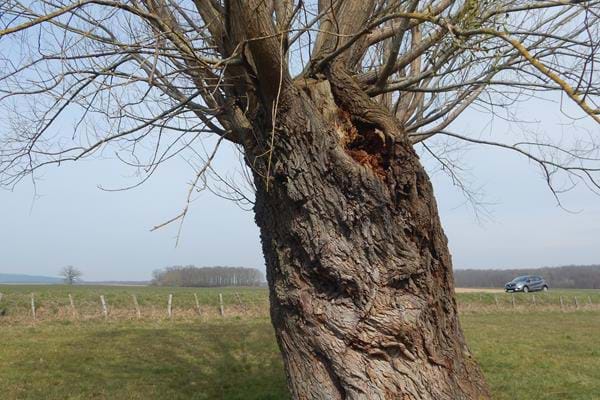Très beau saule têtard qui trône au cœur d'un pâturage le long de la RD133. Cet arbre creux a une circonférence remarquable. Attention, cet arbre est sur une parcelle privée, nous recommandons de l'observer depuis la route départementale.