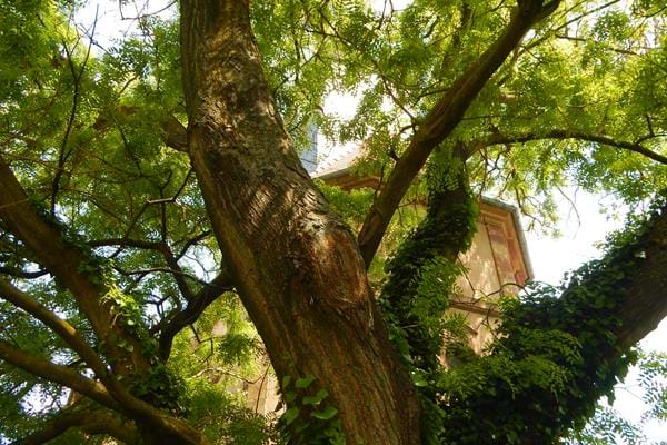Ce très beau Sophora du Japon, aux dimensions conséquentes, apporte de l'ombre à la pelouse qui jouxte l'église du village. Son feuillage clairsemé confirme la quiétude du lieu !