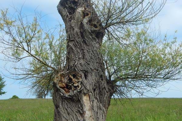Ce beau saule tétard de 8 mètres de haut trône au milieu d'un pâturage qui surplombe la départementale 7 à l'entrée d'Issenhausen. Ses dimensions sont déjà remarquables mais c'est avant tout l'impact paysager qui donne à cet arbre tout son caractère.