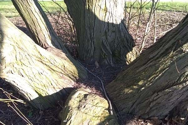 Le ptérocaryer du Caucase (ou à feuilles de frêne) porte des minuscules fleurs en épis pendantes au printemps et de petites noix vertes en été. Celui-ci a la particularité d'être formé de 4 troncs.