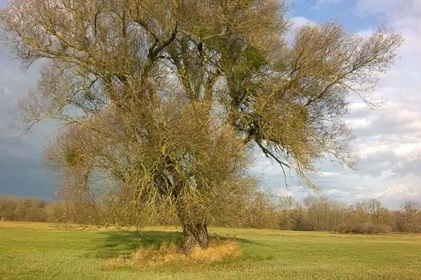 Situé dans la réserve naturelle du delta de la Sauer, ce saule est remarquable pour ses grandes dimensions.