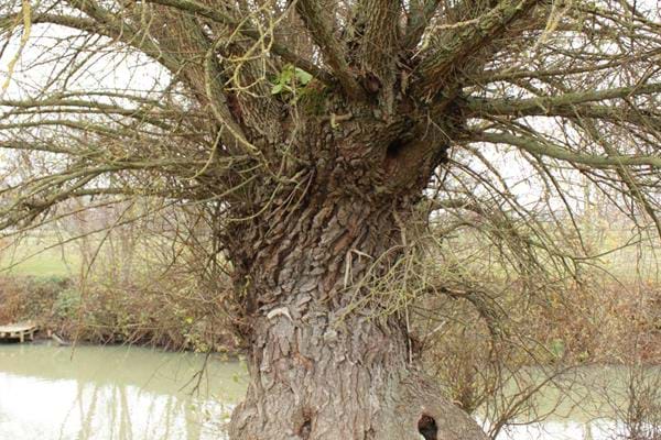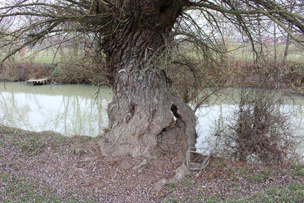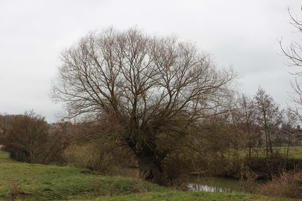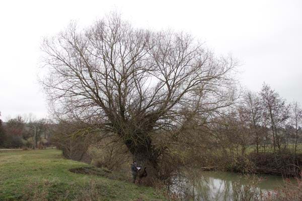 En bord de berge de la Sarre, ce saule de 15 mètres est remarquable pour ses dimensions.