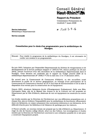 Pour établir le programme de la médiathèque du Sundgau, il est nécessaire de confier une mission à un programmiste.