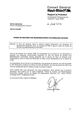 Il vous est proposé, dans le présent rapport d'examiner une demande de participation financière pour un montant de 600 € dans le cadre du Fonds de Soutien aux Manifestations Culturelles.