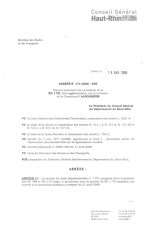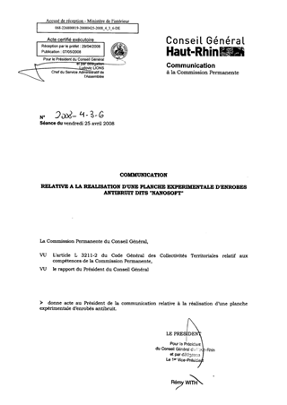 Information sur la réalisation d'une planche expérimentale de techniques nouvelles pour les travaux de renforcement des routes départementales du Haut Rhin.