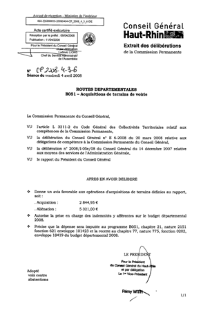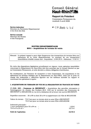 Le présent rapport a pour objet d'approuver les acquisitions de terrains liées aux opérations de la voirie départementale. Le montant de ces transactions immobilières s'établit comme suit : Acquisition : 15 822,44 € – Régularisation : 270,00 €.