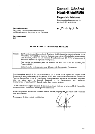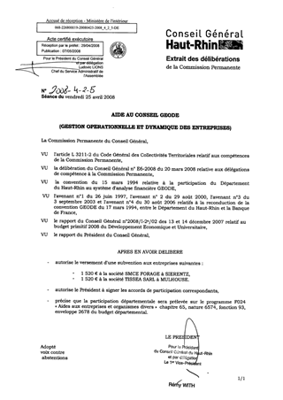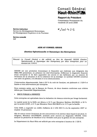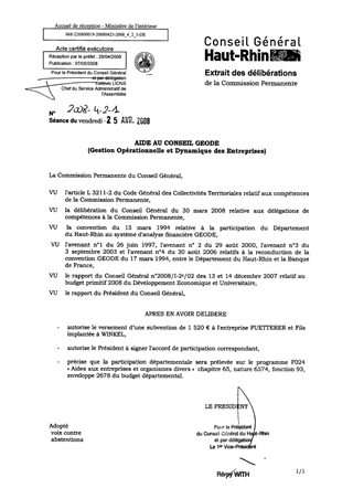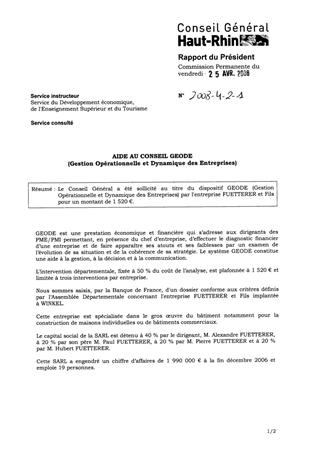 Le Conseil Général a été sollicité au titre du dispositif GEODE (Gestion Opérationnelle et Dynamique des Entreprises) par l'entreprise FUETTERER et Fils pour un montant de 1 520 €.