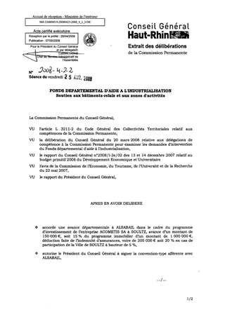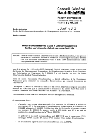 Dans le cadre du Fonds Départemental d'Aide à l'Industrialisation, il est proposé d'affecter à la SERM un soutien départemental de 760 000 € sous la forme d’une avance remboursable pour l'acquisition de la friche industrielle DMC à MULHOUSE.